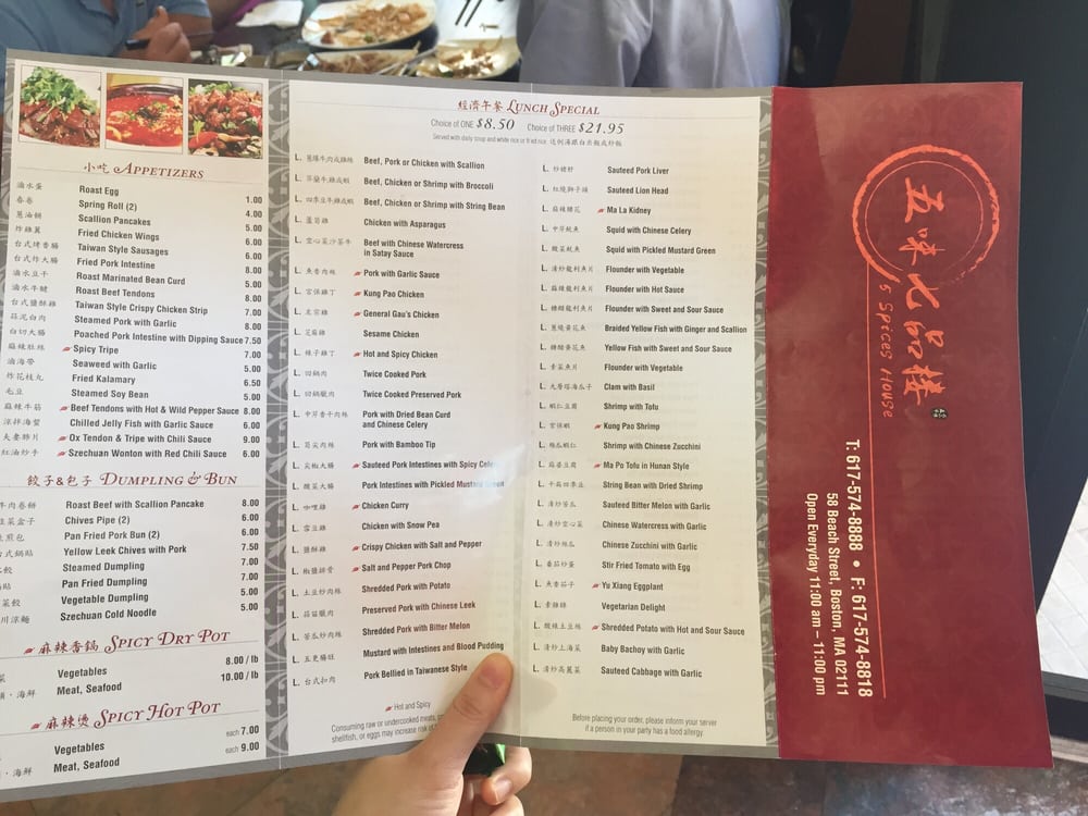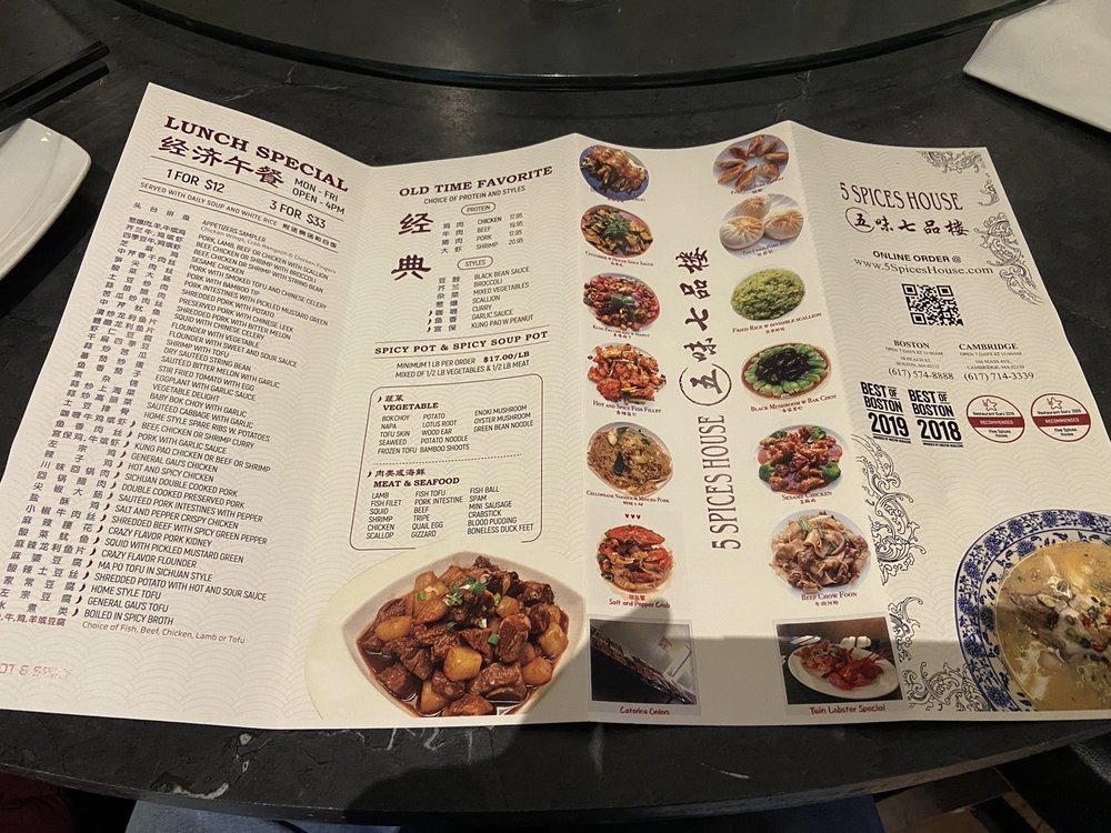 Five Spices House in Boston offers a diverse menu of Szechuan cuisine with a variety of appetizers, soups, and vegetable dishes. The Salt and Pepper Crispy Chicken is a standout dish according to Vicki M., who also enjoyed the scallion pancakes and steamed pork dumplings. The restaurant's lunch specials, like the 3 dishes for $33 deal, make dining here affordable and satisfying, as described by Channy I. Adina S. praised the delicious Lamb Cumin Style and General Tso's Chicken, while Dayana P. appreciated the fresh and flavorful dishes like lo-mein and salt and pepper shrimp. Despite some minor service issues, the overall dining experience at Five Spices House is satisfying, making it a worthwhile choice for those craving authentic Chinese cuisine in Boston's Chinatown.